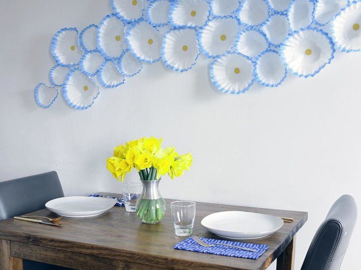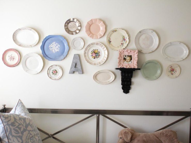Классический прием, не теряющий свою актуальность. Наиболее уместно такой декор смотрится на кухне и в столовой, но в зависимости от направления дизайна панно из тарелок можно разместить и в гостиной, и даже в спальне, декорированной в стиле прованс.