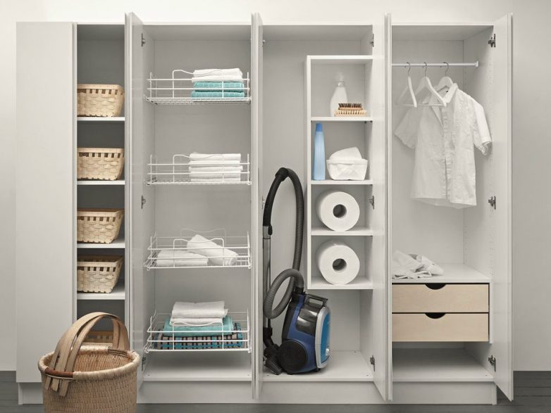 Встроенные системы для хранения вещей решают вопрос размещения вещей и при этом не загромождают пространство.