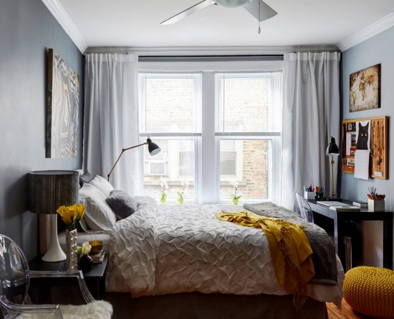 пространство разделите стеклянными блоками – так получите две функциональные и естественно освещенные зоны. Прочный материал идеален для установки перегородок в квартире; перегородка из гипсокартона сделает одну зону глухой, комната лишится естественного освещения. Такая перегородка сгодится для спальни, где искусственный свет будет смотреться даже лучше. Для этого стоит использовать бра, светильники и торшеры;