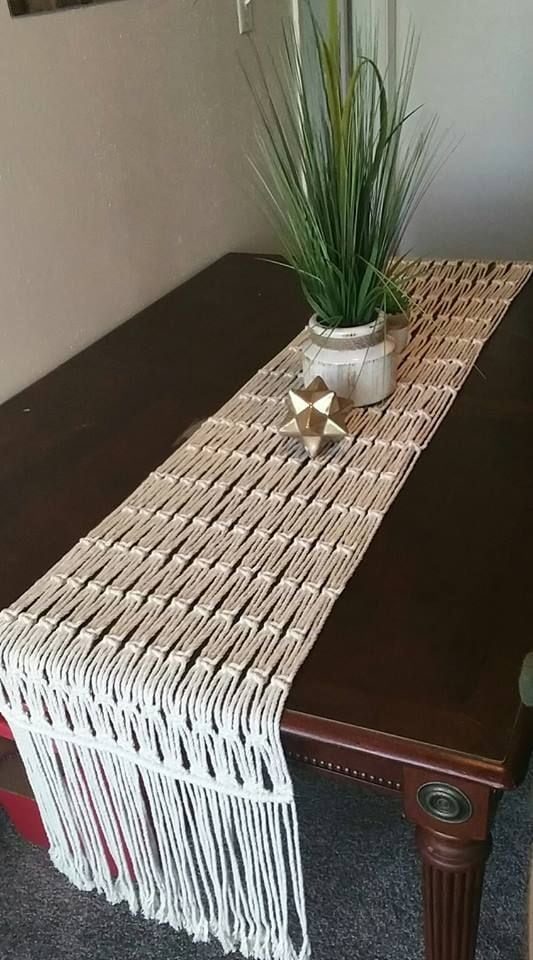 Самодельная дорожка на стол, созданная в технике макраме, уместно и изящно украсит интерьер комнаты, а также станет замечательным и уникальным декором. Сделать такую дорожку не составляет никакого труда! Обычно их плетут из верёвки, однако, материал может быть любым: джут, пряжа и т. д.