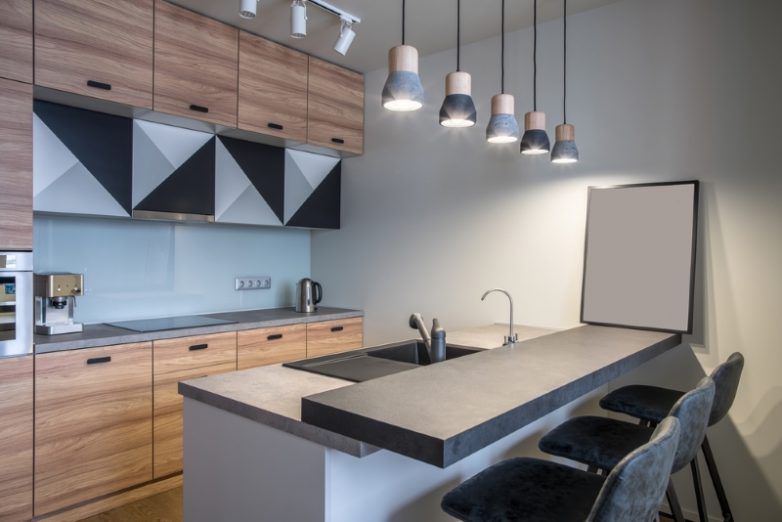 Приглушенное мягкое освещение может быть в спальне, но точно не на кухне. Лучше заранее продумать несколько вариантов освещения, чтобы каждый уголок был хорошо виден в любое время суток. Что касается розеток, то заранее посчитай, сколько техники приходится одновременно использовать. Мы считаем, что в современной кухне делать менее 8 розеток — неразумно.Неудобное расположение техникиТехнику лучше размещать на уровне пояса, принимая во внимание рост всех активных ее пользователей. Лучше заранее просчитать оптимальные размеры и высоту установки бытовых приборов, чтобы впоследствии не тянуться к микроволновке на цыпочках или не стоять на стульчике, доставая из духовки свежеиспеченный пирог.