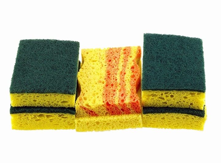 Двойные губки, одна сторона которых очень жесткая, постоянно применяются на кухне. Они отлично удаляют жир и пригоревшую пищу. А также помогают в борьбе с катышками. Пройдитесь по ткани абразивной стороной и наслаждайтесь обновленной вещью.