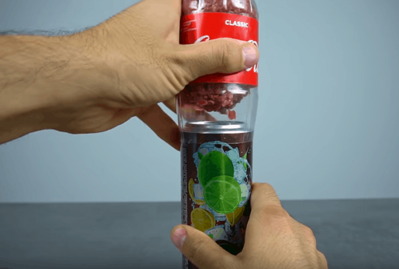 Аккуратно одеваем бутылку на банку, которая по сути является поршнем.