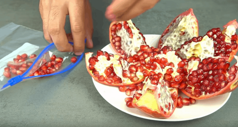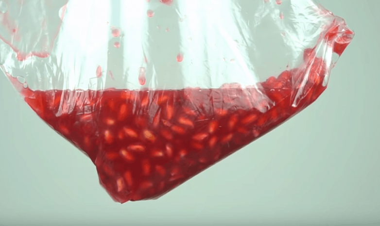 Получаем гранатовый сок за считанные минуты! В качестве приспособления здесь используется обычный пакет с застежкой слайдер и … руки.
