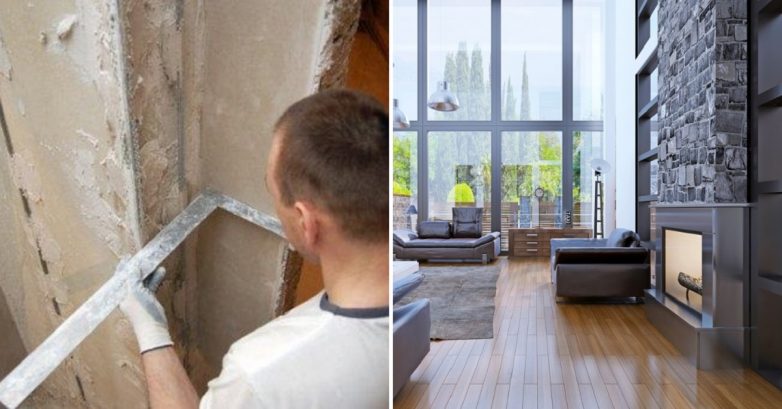 С помощью гипсокартона можно выровнять любую поверхность, это его достоинство. Существует два способа его крепления. Бескаркасный, при котором лист материала прикладывается к поверхности стены и производится разметка с каждой стороны угла. Ножом вырезаются заготовки, а рубанком делаются скосы на стыкуемых частях для плотного прилегания. Затем листы гипсокартона крепятся с помощью монтажной пены.