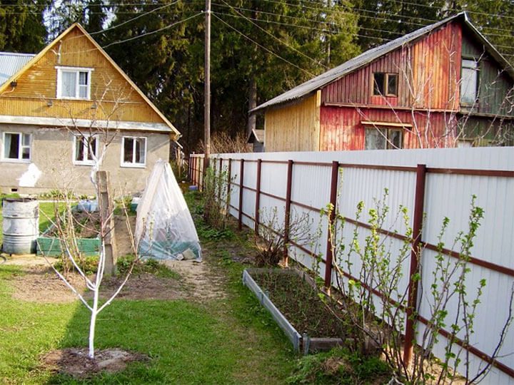 Между домом и забором всегда найдется место для узкой клумбы, плодовых кустарников, горшечных цветов. Оборудовать здесь можно даже мини-грядки.