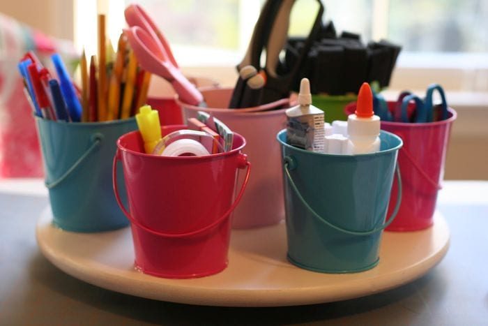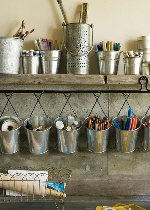 Стильный способ хранения мелочей в ведёрках