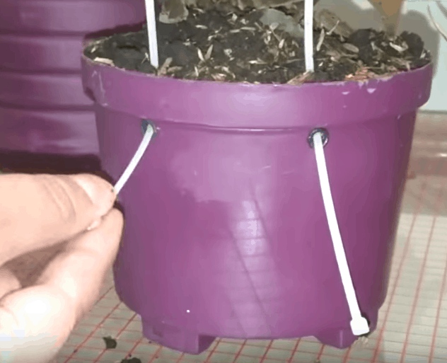 При необходимости дополняем кашпо дырочками.