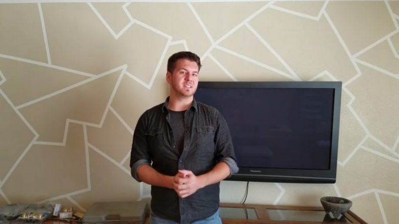 Всё, что вам понадобится, — это заранее подготовленная к покраске стена, клейкая лента и краска. Здесь можно проявить креатив и самостоятельно, «на глаз», сделать узор. Оценивайте самостоятельно, где не хватает линий, и добавляйте их с помощью клейкой ленты.