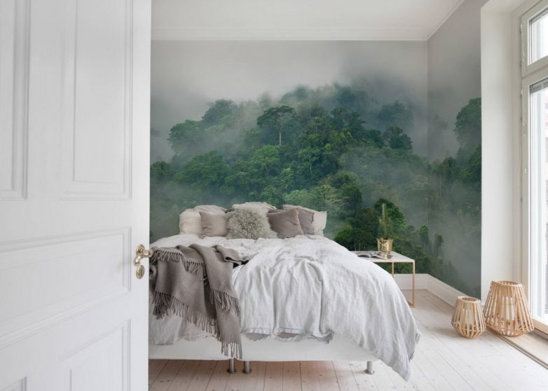 Занимаясь оформлением эко интерьера, необходимо учитывать природные цветовые сочетания. Например, выбрать тематику леса, поляны, джунглей, рощи…
