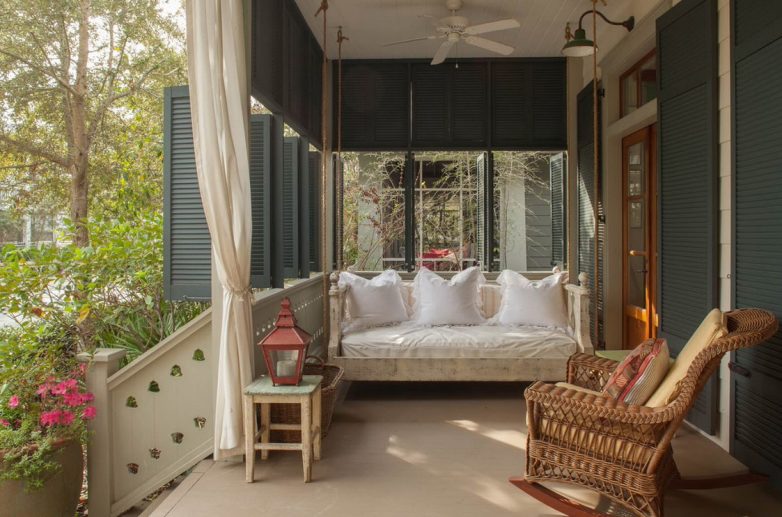 Для спальни выбирают массивную кровать из бамбука либо дерева с элементами ковки. В кухне гармонично будет выглядеть плетеная мебель, а в гостиной – массивная мягкая мебель с обивкой из ткани.
