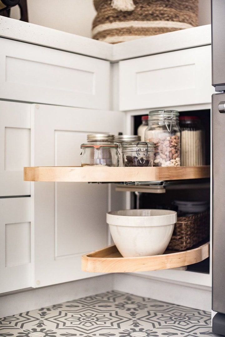 Разместите полочки для специй на внешней стороне одного из кухонных ящиков, чтобы не тратить место внутри. Кроме того, специи всегда будут на виду