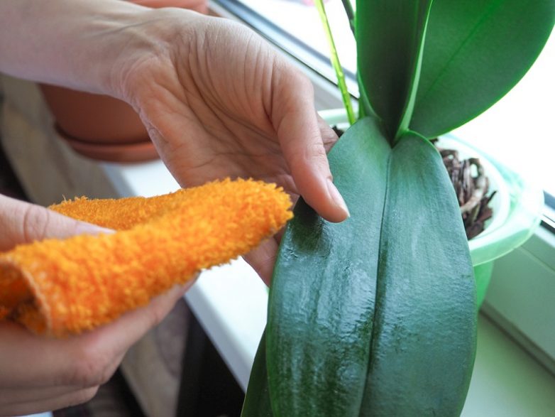 Затем орхидею следует просушить: просто оставь на два-три часа на воздухе. Ни в пазухах между листьями, ни в сердцевине растения не должно остаться капель воды, а корни должны немного просохнуть и впитать в себя то, чем их обработали.