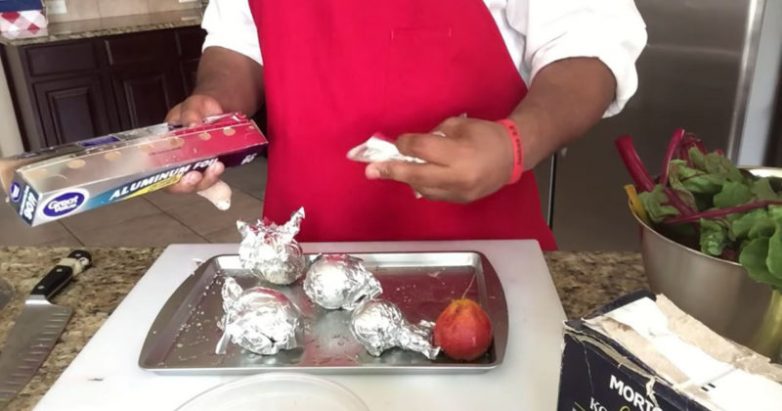 Твёрдые овощи, такие как свекла, брюква, репа, тыква, нужно предварительно запечь в духовке, предварительно обернув каждый овощ в фольгу. Запекать до мягкости (в зависимости от размера овоща).