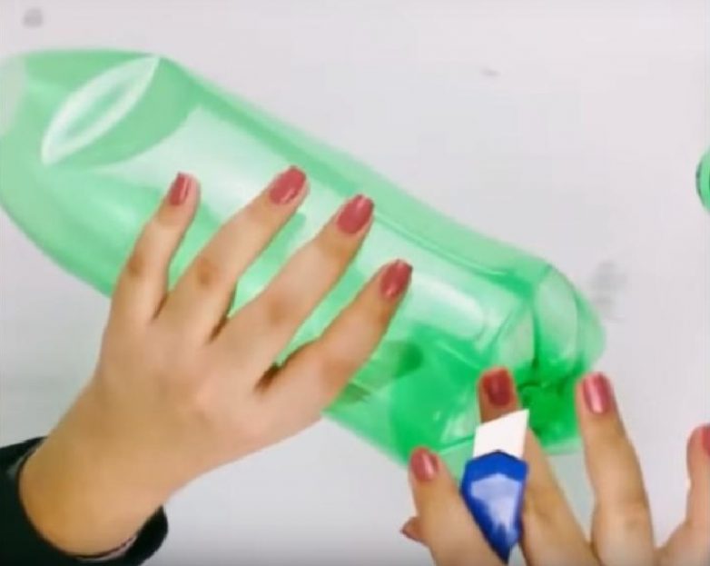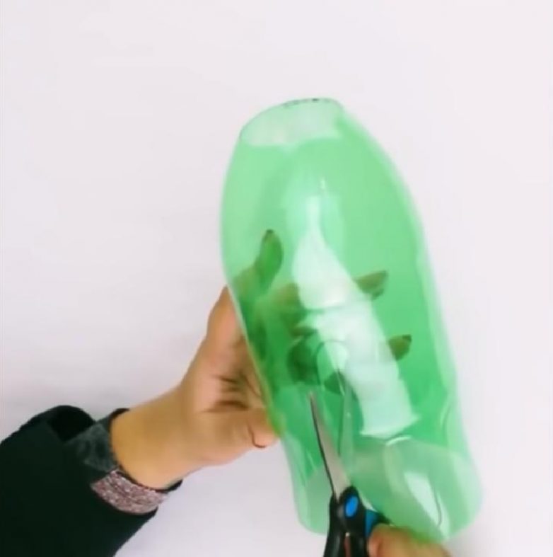 У оставшихся двух бутылок отрежь только донышко, но оставь их с горлышком. И также нарежь свободную часть на полоски.