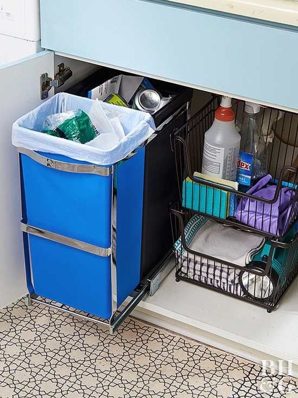 Не стоит оставлять пустым место под раковиной, особенно в условиях небольшой кухни. При рациональном подходе всегда можно разместить здесь массу нужных вещей. Главное — обеспечить в случае необходимости беспрепятственный доступ к коммуникациям.