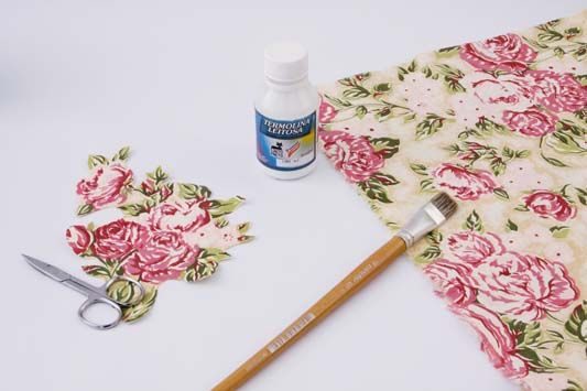 2. Вырежьте цветы из ткани и прикрепите к банке. Можете, при помощи трафарета, добавить больше цветов на банку.