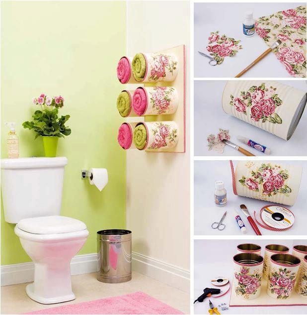 Оригинальный и очень милый способ хранить полотенца в ванной комнате — сделать для них отдельные ящички из бросового материала! Это бюджетно, практично и действительно красиво. Банки можно украсить по своему усмотрению, чтобы дополнить интерьер нетривиальным и практичным декором.