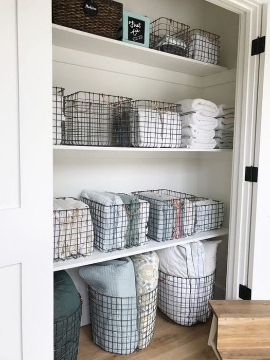 Металлические корзинки не привлекают к себе внимание, но упорядочивают вещи