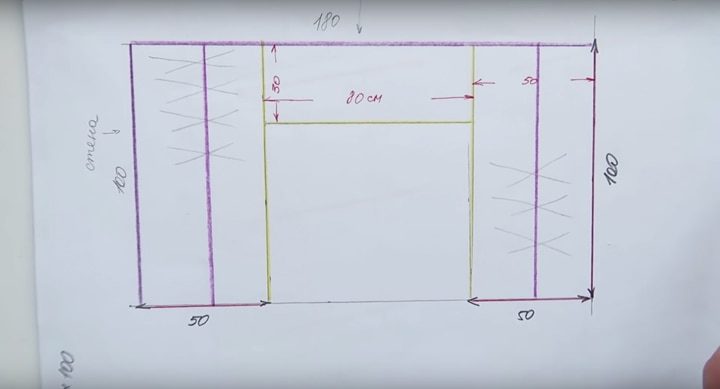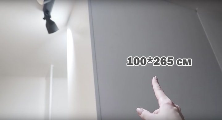 Для строительства гардеробной можно использовать фанеру, деревянные щиты, ДСП. Но именно распил ДСП с обклейкой кромки будет самым простым вариантом по обработке и стоимости. В данном проекте гардеробная комната возводилась с размерами 100 на 180 сантиметров.