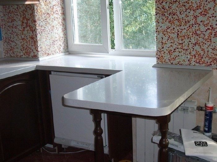Стол-подоконник может иметь любую форму. Не исключены при его оборудовании выдвижные или откидные элементы.