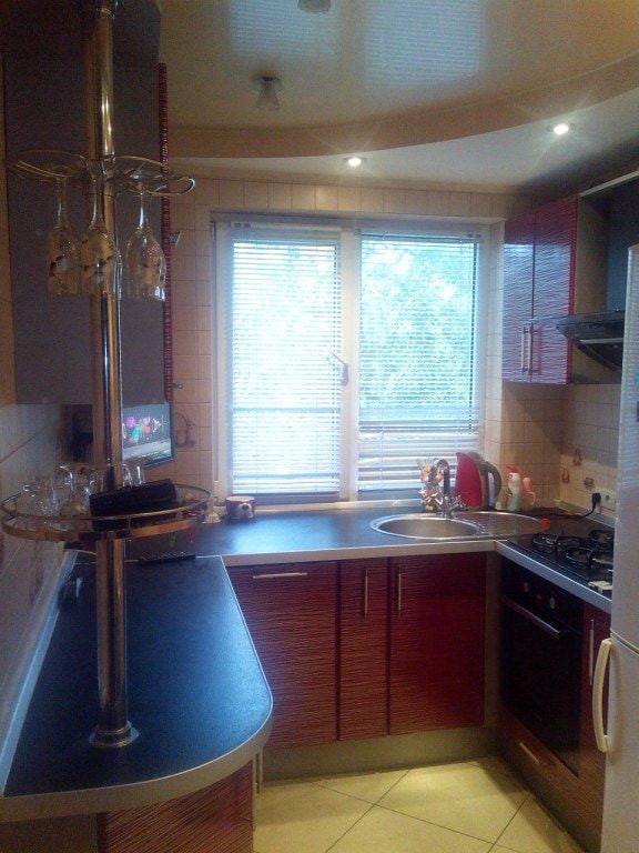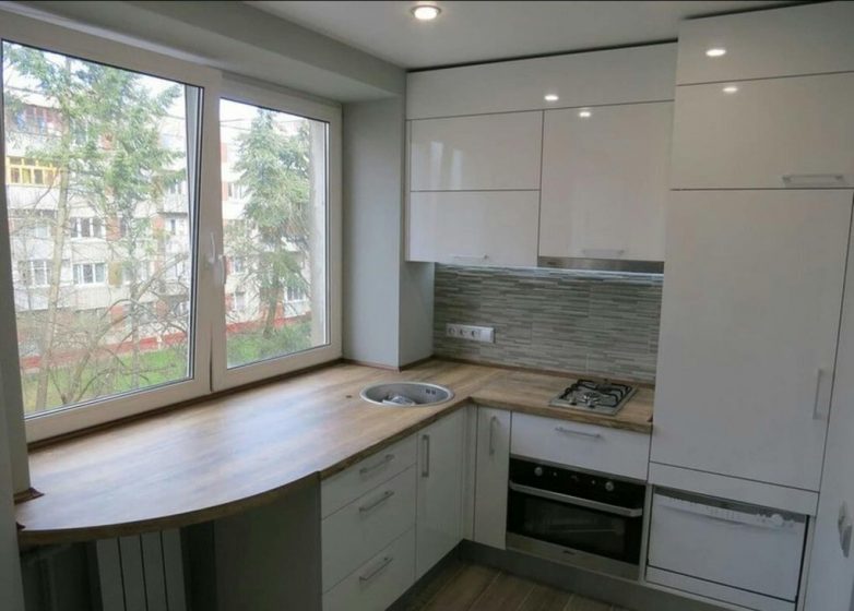 Перенести под окно можно даже мойку, но такой вариант потребует проведения дополнительных коммуникаций. Также не исключено появление следов от брызг на стекле.