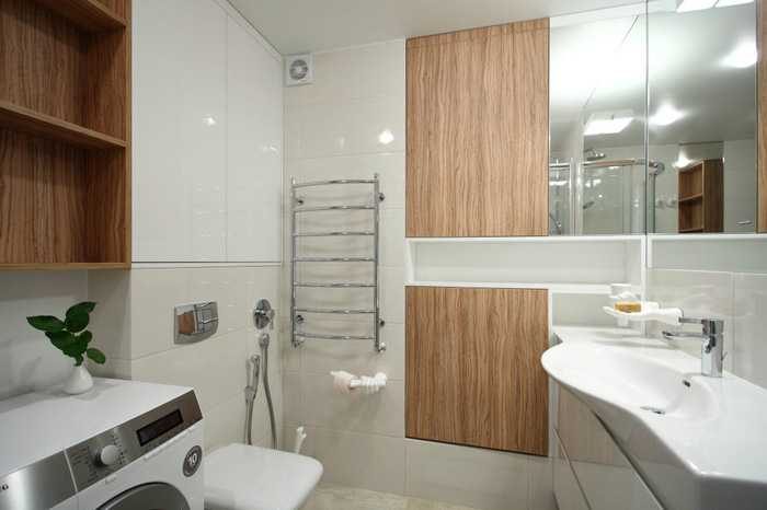 Ванная комната также небольшая, однако, дизайн в ней продуман до мелочей
