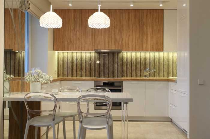 Чтобы в квартире было больше свободного пространства, было решено снести стену между гостиной и кухней и объединить эти две комнаты в одну
