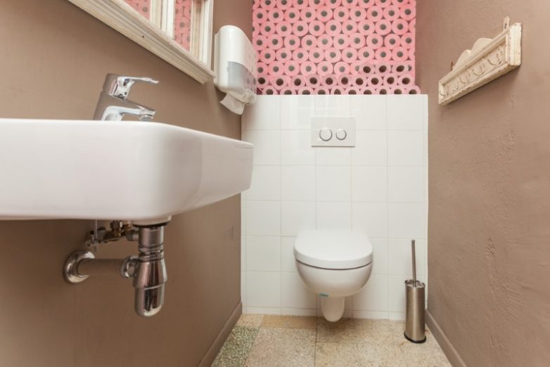 Чтобы комната выглядела стильно, выбери 2 основных цвета для туалета. Яркие и темные цвета съедают пространство, и комната визуально становится еще теснее.