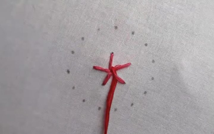 Протяните нитку у середины получившейся звезды. Заводя иглу за соседний луч, накрутите нить у основания.