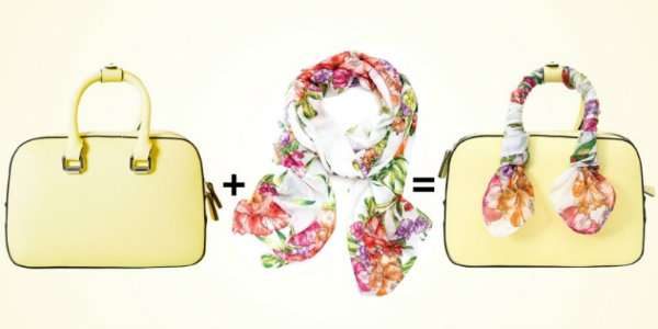 Красивый шелковый платок, аккуратно обмотанный вокруг ручки, может освежить немного надоевший аксессуар. Кроме прочего, этот прием может замаскировать места, в которых кожа потрескалась.
