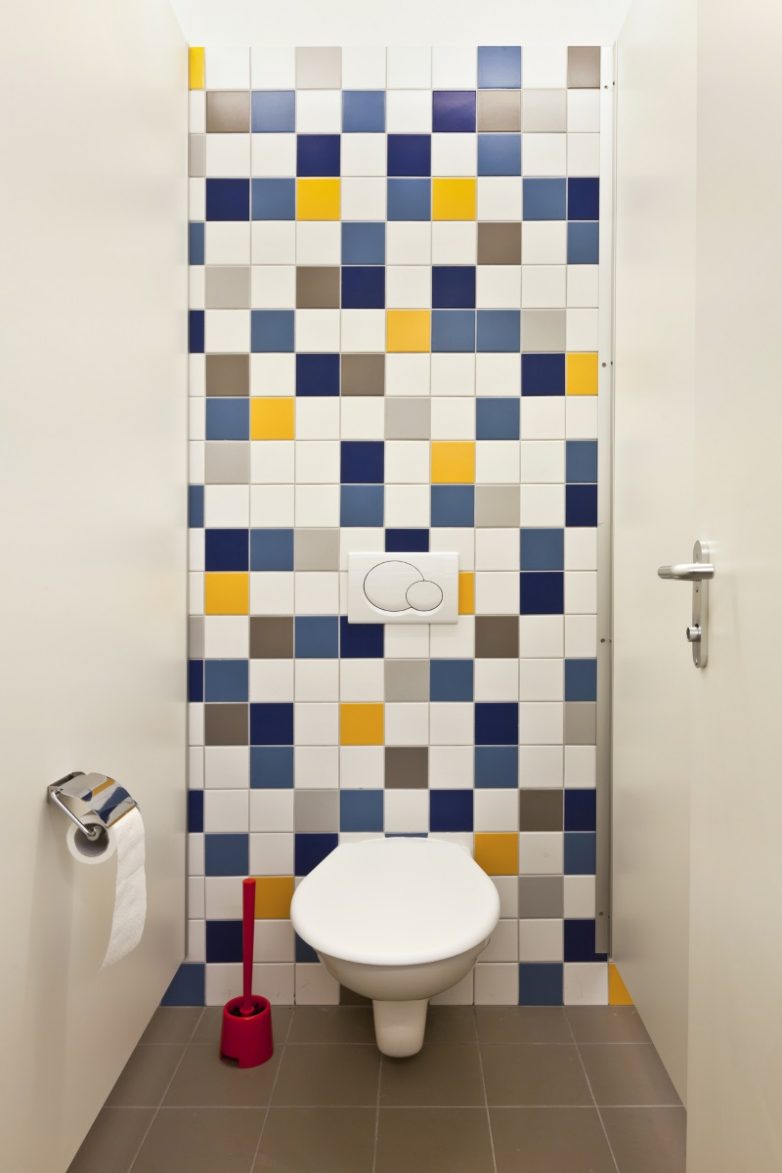 Если туалет больше 2 кв. м, нужно придумать, что можно разместить в пустых углах. Хорошо впишется стиральная машинка, бойлер или биде.