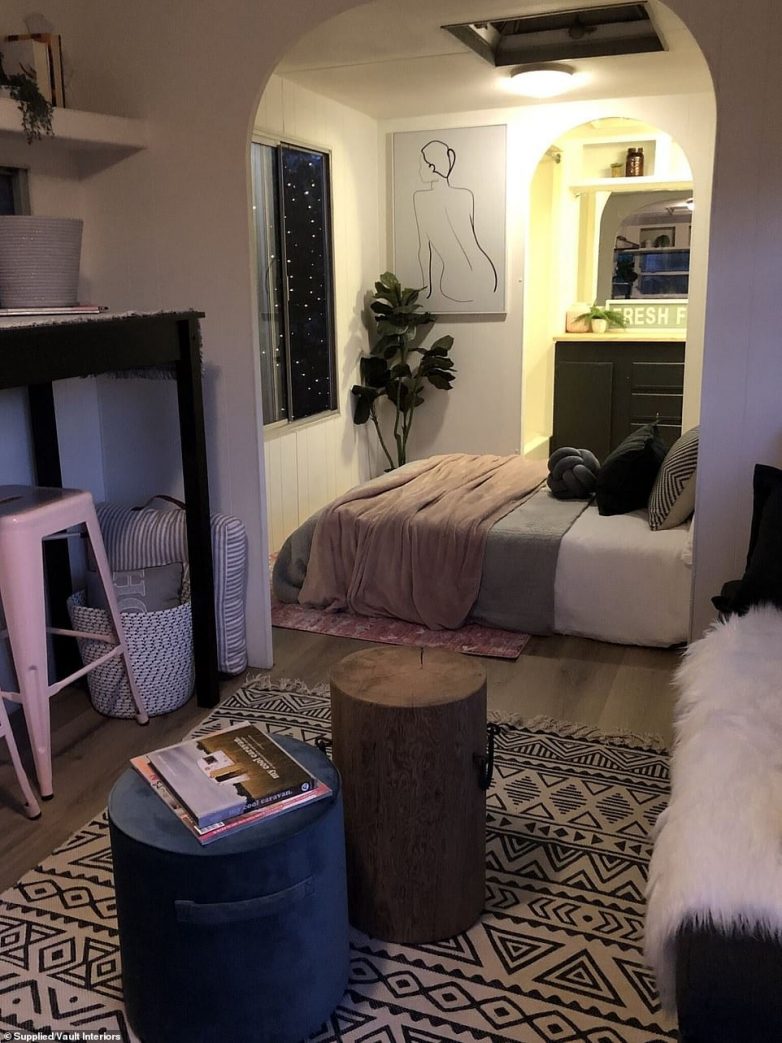 «Для этого проекта я выбрала старенький фургон, купленный у A One Caravan Repairs. Мы могли его переделать, добавить необходимые удобства», — рассказывает Жюстин, директор Vault Interiors. «Удивительно, но несмотря на 80-й год выпуска, фургончик был в хорошем состоянии. Команда профессионалов проверила все основные коммуникации. Потребовался только ремонт крыши».