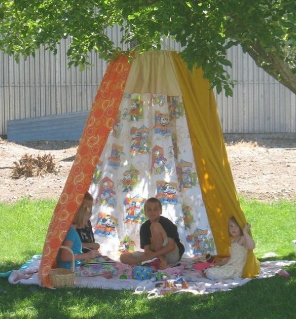 Шалаш из обруча и яркой ткани