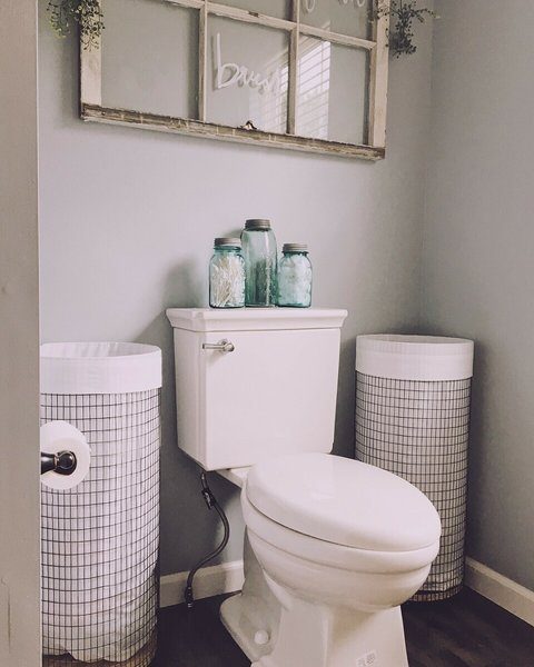 Найти в Сети подходящий постер, распечатать и вставить в рамку не составит труда даже тем, кто далек от рукоделия и творчества.Корзина для храненияА вот если вы умеете вязать или шить, обязательно смастерите стильные корзины для хранения в едином стиле. Таким аксессуарам будет рада любая ванная комната. А главное, они здорово помогут в деле организации аккуратного и красивого хранения.