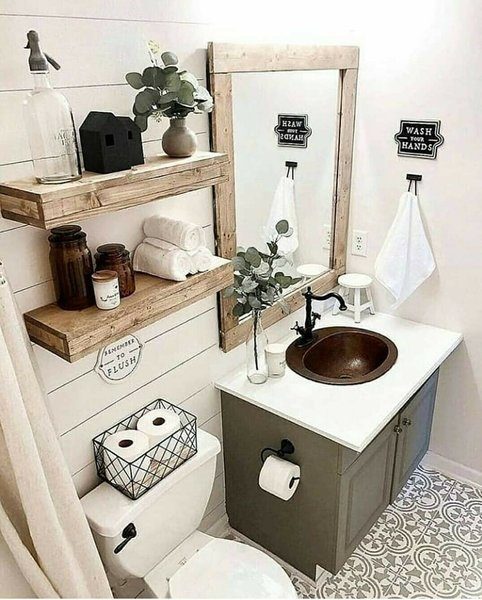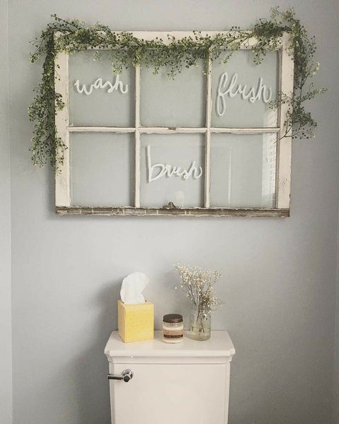 Типовые ванные комнаты редко могут похвастаться наличием окна в санузле. Но вы вполне можете создать его иллюзию, использовав в декоре фальш-окошко (или просто старую раму).