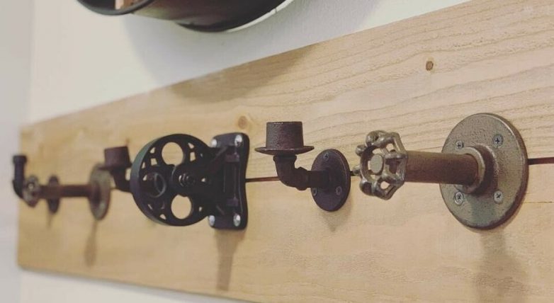 Еще один аксессуар для ванной комнаты, который вы легко можете сделать самостоятельно, — настенная вешалка. Понадобится основа (например, спил дерева, дощечка или даже старая разделочная доска) и крючки (можно приобрести готовые, смастерить самостоятельно или использовать для этих целей старые дверные ручки.