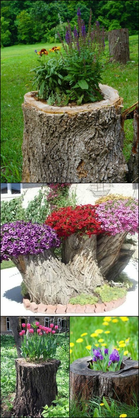 Выкорчевать пень — задача не из простых, особенно, если дерево действительно большое. Есть другой, альтернативный способ преобразить пни на участке — превратить их в удивительные украшения! Пень может выступать в качестве необычной цветочной клумбы, от которой просто не отвести глаз.