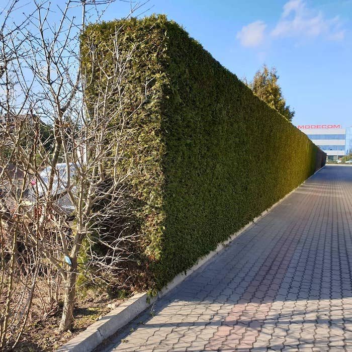 Для создания живой изгороди из этого вечнозеленого кустарника, стоит обратить внимание на западную тую. Она достаточно морозостойкая, долговечная, имеет множество различных форм и сортов. Высота западной туи достигает до 20-ти метров.