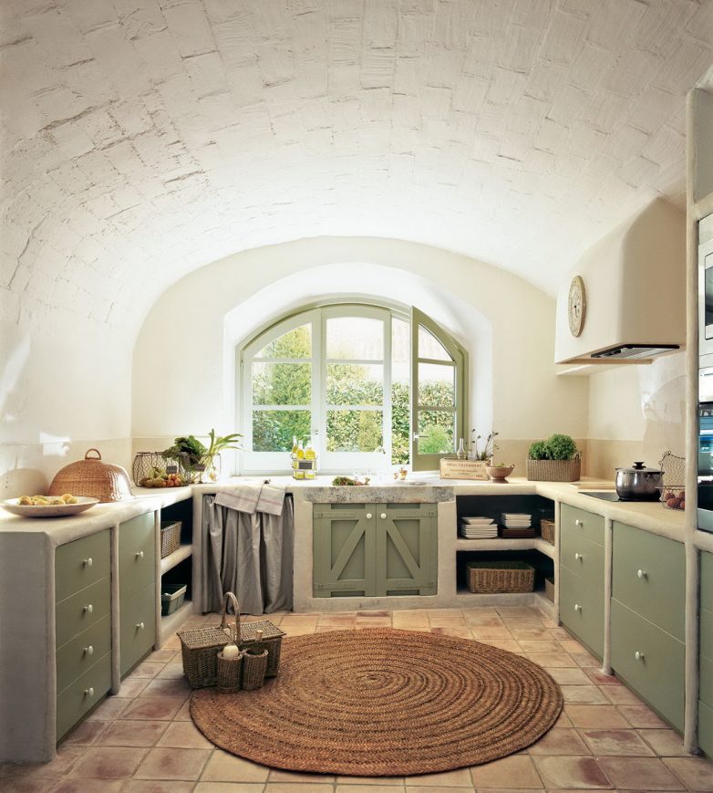 Прованс «любит» дерево и мелкие цветочки, которые вносят в пространство дачной кухни провинциальную простоту, элегантность и легкость. Стиль кантри отличается некой грубостью и брутальностью, которую создает неприкрытая каменная кладка, как в стиле лофт, невычурная, можно даже сказать грубая мебель, плотный натуральный текстиль.