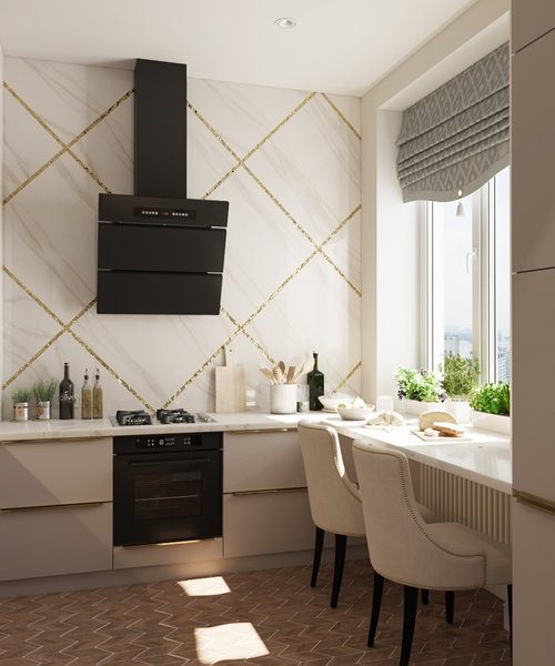 Если в квартире маленькая кухня, выносите столовую зону в соседнюю комнату — если только у вас не однушка. Так получится обустроить и удобную кухню, и эргономичную столовую.