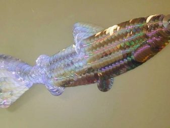 Переливающийся своим необычным цветом диск, походит на чешую рыбы. Предлагаем сделать вам интересный декор для ванной комнаты: возьмите диск и черным маркером нарисуйте подобие чешуи. Приклейте из бумаги плавники, глаз, хвост. Поделка готова. В специализированных магазинах для творчества продают кукольные глаза любого размера. Используйте их для вашего изображения рыбы.
