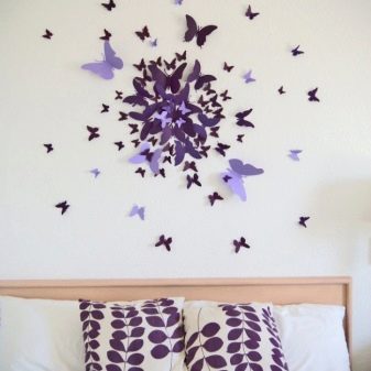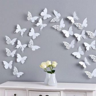 Бумажные бабочки – прекрасное дополнение в гостиную или в спальню. Именно в этих комнатах они создадут ощущение невесомости, легкости, которое требуется для подобных комнат.