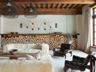 Для деревянного деревенского дома также подойдут простые элементы декора. Что-нибудь, навевающее на мысли о природе, простоте (например, поделки из дерева или ткани будут отличным дополнением декора такого дома).