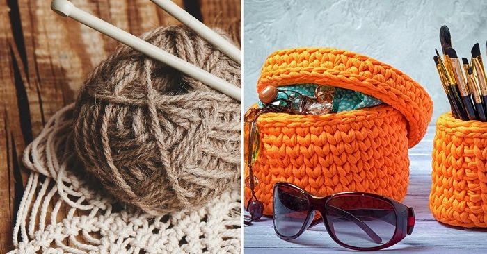 Сегодня рмы подготовили для всех рукодельниц подборку идей декора с помощью пряжи. Достаточно вдохновения, чтобы и дальше не расставаться со своим любимым хобби!Для создания таких органайзеров для кисточек и прочих безделушек тебе понадобится крючок толщиной 7 миллиметров и трикотажная пряжа трех разных цветов. Кстати, можно сэкономить и самостоятельно сделать трикотажную пряжу.