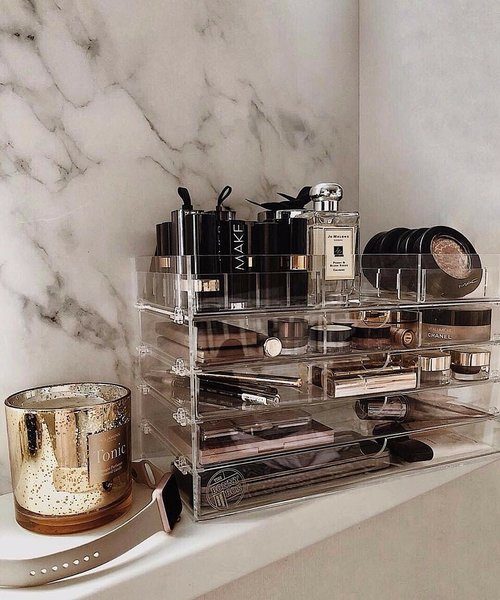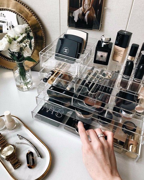 С украшениями разобрались, а как быть с косметикой? И не только декоративной, но и тюбиками кремов и сыворотками? Можно заставить ими столешницу туалетного столика или отнести в ванную. Но если удобнее по утрам или вечерам ухаживать за собой в комнате, придется искать варианты для порядка и удобства. Органайзер для косметики с отделениями — как раз то, что нужно.