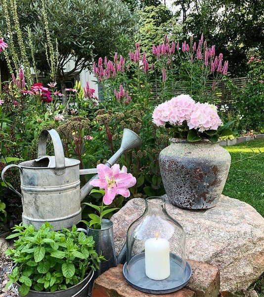Садовые принадлежности, например, лейка, тоже станут отличным декором. И кстати, чем больше ей лет, тем лучше — дачный стиль станет только интереснее с винтажными украшениями.