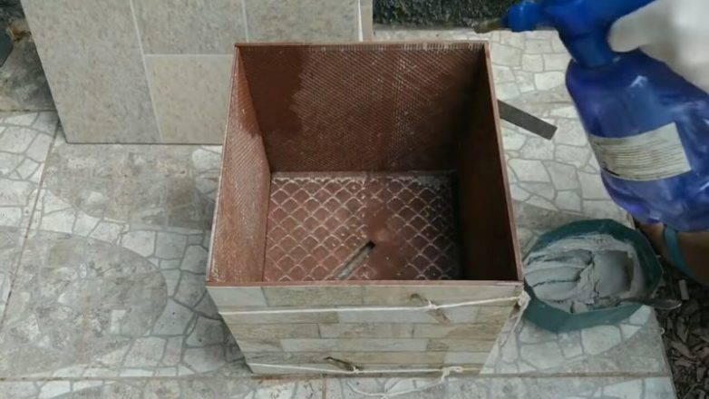 Первым делом следует наметить, какого размера будет будущий вазон, и отрезать лишнее. Понадобится 4 плитки одинакового размера, для всех сторон вазона.