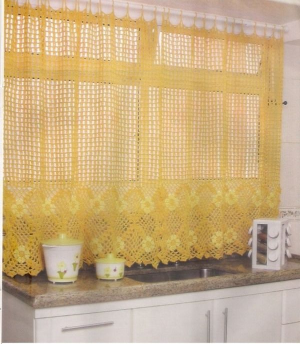 На кухне мило будет смотреться шторка из лоскутков, а также вязанная крючком или в технике макраме. Если окно небольшое и не так много света в него проникает, сделайте шторку-бахрому из бисера и бусин. Даже единственный солнечный лучик озарит вашу кухню калейдоскопом разноцветных бликов.