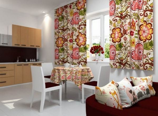 Чтобы штора была не только красива, но и уместна, опирайтесь на общий дизайн кухни. Пусть мебель, отделка стен и текстиль гармонично вторят вашим предпочтениям. Все предметы и детали интерьера нужно подчинить единому стилистическому решению. Остановимся на самых популярных решениях.